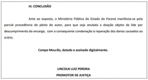 Esse foi o entendimento do promotor Lincoln Luiz Pereira nas alegações finais de ação que tramita desde 2008.