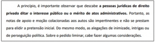 "(...) É importante observar que descabe a pessoas jurídicas de direito privado ditar o interesse público ou o mérito de atos administrativos".