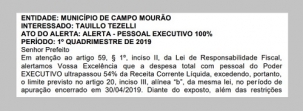 O Tribunal de Contas do Estado publicou alerta nesta quinta-feira para o prefeito de Campo Mourão, TauilloTezelli.
