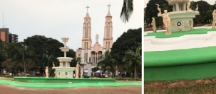 "O chafariz da praça Getúlio Vargas foram tombados como Patrimônio Histórico de Campo Mourão e, como tal, deve ser preservadas suas características. Está certa essa cor que pintaram? O que é isto?"