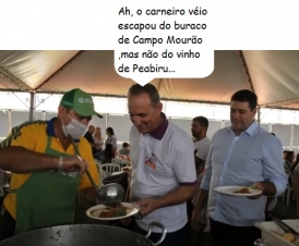 Olha aí mais um clic da 24ª Festa do Carneiro ao Vinho, realizada domingo em Peabiru. Desta vez, o prefeito Júlio Frare aparece se servindo do prato típico, enquanto o presidente da Comcam, Edenilson Miliossi (Barbosa Ferraz) aguarda na fila. "Atingimos nossos objetivos", comemorou Frare, que agradeceu visitantes, servidores e entidades.