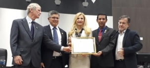 Sessão da Câmara de Campo Mourão sem homenagem não é sessão da Câmara de Campo Mourão. Nesta terça-feira houve entrega de moção para o Rotary Gralha Azul, que completou 40 anos. A vereadora-autora, Nelita Piacentini, e o prefeito Tauillo Tezelli entregaram a moção ao pesidente do clube, Gerson José Batista e a Pedro Paulo Peron e Marcos Corpa.