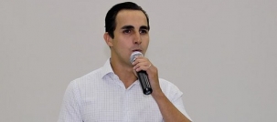 Pedro Montans Baer, presidente da Santa Casa, ao pedir uma salva de palmas ao ex-presidente da instituição, José Carlos Laurani; durante discurso na inauguração da reforma do centro cirúrgico; nesta segunda-feira à noite.