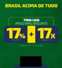 O anúncio no Facebook destaca "17" por cento de desconto e parcelamento em ""17" vezes, mesmo número do candidato.