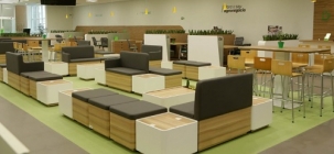 Praça de alimentação de shopping? Até parece, mas é a "sala de espera" da nova agência do Sicredi de Campo Mourão, que a abre ao público nesta quinta-feira. Nada de "cadeirinhas" para aguardar o caixa, não. "É um ambiente diferente do que se vê no bancos", frisa o gerente regional Cirineu Varolo. Não falta, é claro, o wifi. Nem tomada para carregar o celular. A agência, rua São José, tem estacionamento para 70 veículos.