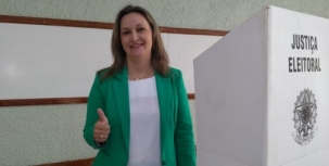A candidata a deputada estadual Karla Tureck (PODE) votou pela manhã no colégio Marechal Rondon.