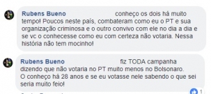 "O conheço há 28 anos e se eu votasse nele sabendo o que sei seria muito feio!", escreveu no Facebook.