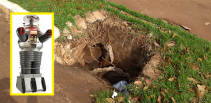 Olha quem está de volta. O Robô de Perdidos no Espaço! Os sensores dele foram ativados para informar sinal de perigo em ponto movimentado na cidade. Na perimetral Tancredo Neves, bem em frente ao Condor, o bueiro está abertinho da silva.
