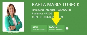 Está deferida a candidatura a deputado estadual de um membro da família Tureck. Mas não é do ex-prefeito Nelson Tureck ainda, não. É da filha "do meio", a ex-secretária da Educação Karla Tureck. Ambos são do Podemos.