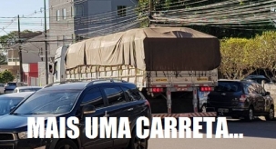 Os caminhões continuam cruzando o centro de Campo Mourão. O clic da carreta é da tarde desta segunda-feira.