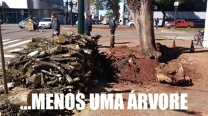 O massacre da serra elétrica também continua no centro da cidade. O clic é da rua São Paulo, esquina com av. Irmãos Pereira.