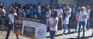 Alunos do Unidade Polo, por usa vez, apareceram na avenida amordaçados. "A escola é um espaço de livro pensamento. Não à Lei da Mordaça!", destava uma das faixas usadas pelos estudantes. Foi um protesto contra o projeto que o governo chama de "escola sem partido". "Querem calar os educadores para que não façam os alunos enxergarem o que está por trás dos discursos políticos", destacava outra faixa.
