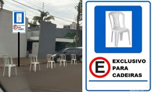 Na rua Interventor Manoel Ribas, centro de Campo Mourão, cadeiras plásticas reservam vagas de estacionamento. A cena é comum na cidade. Boca Santa dá uma mãozinha para "legalizar" a situação.