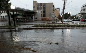 Av. Irmãos Pereira, esquina com rua Harrison José Borges, alagada durante a chuva da manhã desta quinta-feira. Um "rio" em pleno centro da cidade. Fraterno Maria Nunes