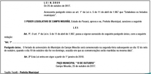 O dia 10 de outubro não é mais feriado em Campo Mourão.