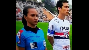 A árbitra Edna Alves, de Goioerê, trabalhou no último dia 22 no estádio do Pacaembu, em São Paulo. Foi auxiliar na vitória do São Paulo sobre o Flamengo (2 a 0) pelo Brasileirão. Olha ela aí, ao lado do capitão Hernanes, do São Paulo. Um domingo depois, dia 29, Edna estava em Campo Mourão, onde foi a árbitra principal no jogo Sport 2 x Grecal, pela Terceirona do Paranaense.