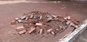 A árvore da av. Irmãos Pereira, na praça Getúlio Vargas, que caiu com a ventania foi retirada. Agora a pergunta que não quer calar: quando vão arrumar a calçada?