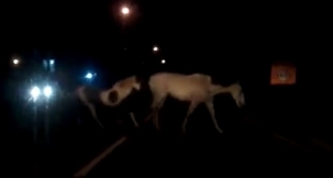 Cavalos cruzam a rua Miguel Luiz Pereira, por volta das 23h desta quinta-feira. O flagra é dorepórter França Nery, da Musical FM.