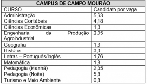 No câmpus de Campo Mourão são 846 inscritos para 290 vagas em 10 cursos de graduação.