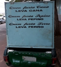 No centro de Campo Mourão, camionete estaciona com uma carga contendo uma curiosa mensagem. Fraterno