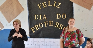 Farol - A prefeitura promoveu confraternização nesta segunda-feira em comemoração ao Dia do Professor (15 de outubro). Foi na escola municipal Casimiro de Abreu, com a presença de todos os professores da rede municipal. A prefeita Angela Kraus também participou.