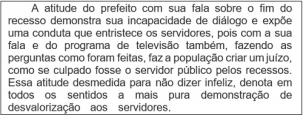 O texto diz ainda que a entrevista "faz a população criar um juízo, como se culpado fosse o servidor público pelos recessos".