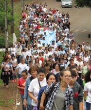 Fiéis participam nesta terça-feira da a 5ª Caminhada com Maria em Campo Mourão. A foto é do trecho entre a Fraternidade O Caminho (Vila Carolo) e a paróquia São Francisco de Assis (jardim Gutierrez). Ao todo, foram 31 km entre 20 paróquias e capelas. Começou às 6h30 na catedral São José e terminou por volta das 19h, no Santuário da Vila Urupês. O evento faz parte das comemorações pelo Dia de Nossa Senhora Aparecida, em 12 de outubro.