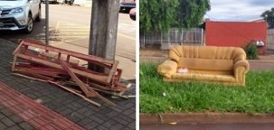 Sofá - Vende-se. Três Lugares, em cor amarelada. Molhou com as chuvas do fim de semana. Procurar no canteiro central da av. Jorge Walter.