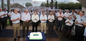 Depois do corte do bolo, o presidente José Aroldo Gallassini falou em entrevista sobre a antecipação das sobras.