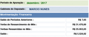 O gabinete do deputado Márcio Nunes foi mais econômico em dezembro e fechou o mês com sobras de R$ 5,5 mil. Tinha R$ 31,4 mil para ressarcimento de despesas, mas só gastou R$ 25,9 mil. Os números dos 54 deputados estaduais estão disponíveis no Portal da Transparência da Assembleia Legislativa.