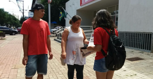 Militantes do PT de Campo Mourão, incluindo o vereador Professor Cícero, fizeram nesta terça e quarta-feira panfletagem em defesa do ex-presidente Lula. Eles distribuíram o jornal "Brasil de Fato" com a manchete "Eleição sem Lula é fraude". Cerca de 30 petistas de Campo Mourão foram acompanhar o julgamento em Porto Alegre/RS.
