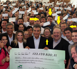 O governo do Estado repassou nesta terça-feira R$ 122 milhões para as 399 prefeituras do Paraná. Foi uma cota extra do ICMS. Para a a região deu R$ 4,5 milhões. Na hora da foto oficial, a prefeita Marília Gonçalves (Roncador) ficou em posição estratégica entre o governador Beto Richa e o prefeito Rafael Greca (Curitiba).