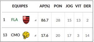 O problema é que o adversário lidera a competição, com 86,7% de aproveitamento (13 vitórias em 15 jogos).