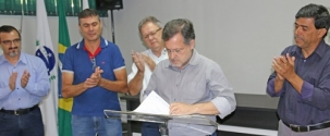 Teve solenidade na prefeitura, nesta sexta-feira, para o prefeito Tauillo Tezelli sancionar a lei que autoriza a terceirização da Festa Nacional do Carneiro no Buraco. Pelas regras, apenas entidades sem fins lucrativos, de Campo Mourão, poderão participar do chamamento público.