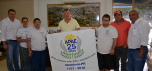 Mamborê - O prefeito Ricardo Radomski, recebeu nesta terça-feira diretores e alunos da Apae. Eles apresentaram o banner comemorativo dos 25 anos da entidade em Mamborê. Também pediram o apoio para os eventos que serão realizados ao longo do ano.