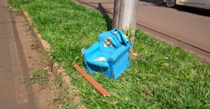 Sofazinho infantil. Vende-se. Na cor azul, em mau estado de conservação. Interessados produrar no canteiro central da av. Goioerê.