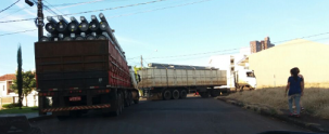 ...duas carretas passam pelo prolongamento da av. Irmãos Pereira, em Campo Mourão, nesta sexta-feira.