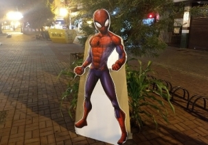 Acabaram os problemas de segurança pública em Campo Mourão. Olha quem apareceu para ajudar a cuidar da cidade. Ele mesmo: o Homem Aranha. Pelo menos um "boneco" do super herói, em tamanho natural, estava nesta quinta-feira à noite no calçadão, em frente ao edifício Antares. E lembre-se: nas horas de folga Peter Parker ainda tira fotos...
