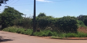 Av. Jorge Walter, esquina com rua Guarapuava. Não dá para andar na calçada. Esse lote é da prefeitura, onde será, talvez, a escola Gurilandia.
