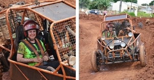 Aconteceu neste domingo o 1º Off Road de Farol. Uma pista foi especialmente consturída para o evento, na entrada secundária da cidade. As manobras radicais levaram o público ao delírio. A prefeita Angela Kraus não perdeu a chance, não, e também deu uma voltinha numa das "gaiolas". "Com certeza, iremos trabalhar para que no ano que vem tenhamos mais participantes”, frisou. E aí, será que ela gostou?...