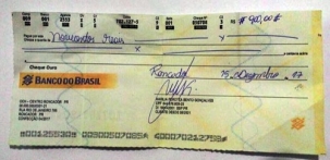 Golpistas estão fazendo cheques falsos por aí.