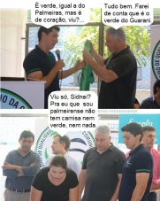 Os cliques são desta quinta-feira, durante a inauguração da arena multiuso no colégio Vinícius de Moraes. O diretor Raoni de Assis presentou o secretário de Estado Douglas Fabrício com uma camisa da escola, verde. Em tempo: Raoni é corintiano e Douglas santista. O prefeito Tauillo Tezelli é Palmeiras e o vereador Sidnei Jardim é Flamengo, mas este não está querendo falar de futebol hoje, não...