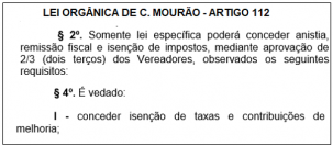O mesmo artigo da Lei Orgânica, no parágrafo quarto, proíbe isenções de taxas.