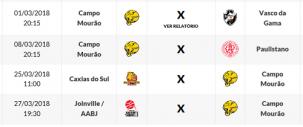 Acabou a zica - Os mourãoenses ainda sonham em passar para os playoffs. O time está em 14° lugar, com quatro vitórias. Botafogo e Joinville têm cinco. O Vasco é 11° colocado, com nove. E como a vitória de terça-feira sobre o Botafogo acabou com a "zica" no Belin Carolo, os cariocas que se preparem...