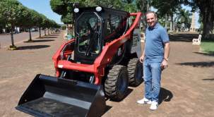 Até parece de brincadeira, mas a máquina aí é coisa séria e custou R$ 131 mil. Foi comprada pela prefeitura de Peabiru, através de emenda do deputado Luiz Nishimori. Chama-se Takeuchi s50v. O prefeito Júlio Frare fez pose ao lado dela. Disse que o equipamento vai agilizar e melhorar a qualidade de serviços em logradouros públicos. E lembre-se: tamanho não é documento...