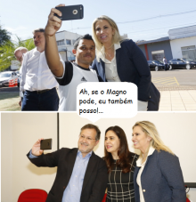 Quando a governadora Cida Boghetti chegou à Comcam, nesta quinta-feira à tarde, adivinha quem foi o primeiro a conversar e até a tirar foto com ela? Ele mesmo: Magno Alves. Os demais tiveram que esperar. Depois até o prefeito Tauillo Tezelli fez a selfie com Cida e a primeira-dama Hosana Tezelli.
