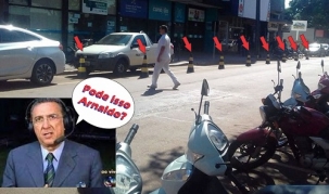 Cones impedem carros de estacionar na av. Irmãos Pereira, centro de Campo Mourão.