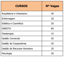 A novidade é o curso de direito, com 60 vagas, à noite.