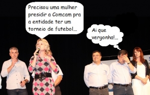 O clic é da semana passada, quando o secretário de Estado Michele Caputo (Saúde) participou de evento no Teatro Municipal. Vários prefeitos participaram, como o anfitrião Tauillo Tezelli e a presidente da Comcam, Angela Kraus (Farol). Em tempo: o tema era saúde. Levar para a Copa Comcam faz parte da "liberdade poética" deste Site...