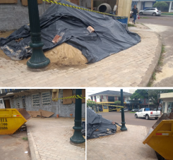 Internauta reclamou que obras no Centro Catequético deixaram a calçada da rua Harrison José Borges intrasitável, mas não é bem assim. Fotos enviadas pela Mitra Diocesana mostram que foi deixado passagem para o pedestre.
